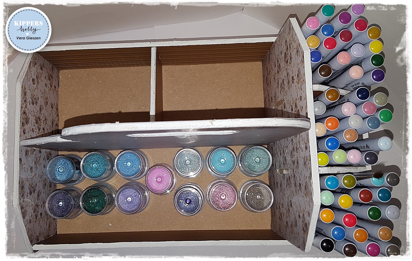 Cette boite à outils est idéale pour ranger votre matériel de bureau ou autre, comme les Markers de ZIG et les poudres d'embossing Wow!.