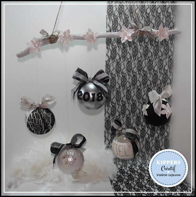 Fixer les boules à l'aide de fil de nylon sur une branche patinée